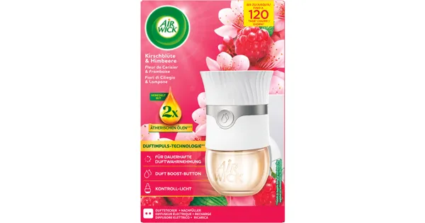 Tauche dein Zuhause in eine blumige Frische und erlebe die Magie der Kirschblüte mit dem Air Wick Duftstecker Starter-Set. Stell dir vor, du trittst nach einem langen Tag in einen Raum, der mit dem zarten Duft von Kirschblüten erfüllt ist. Dank der angereicherten ätherischen Öle bietet dieser Duftstecker eine wohltuende und angenehme Atmosphäre für dein Zuhause. Passe die Duftintensität ganz nach deinen Wünschen an und geniesse bis zu 120 Tage anhaltende Frische.