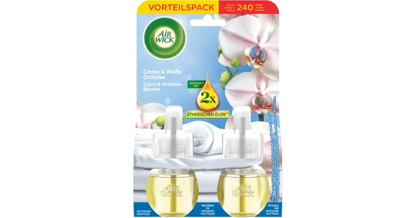 Erlebe jeden Tag den Luxus eines frisch duftenden Zuhauses mit dem Airwick Duftstecker Nachfüller in der betörenden Kombination aus Baumwolle und Orchidee. Stelle dir vor, wie der sanfte Duft ätherischer Öle den Raum erfüllt und für eine angenehme Atmosphäre sorgt. Mit diesem Vorteils-Doppelpack sicherst du dir bis zu 240 Tage anhaltende Frische – perfekt für deinen Alltag!