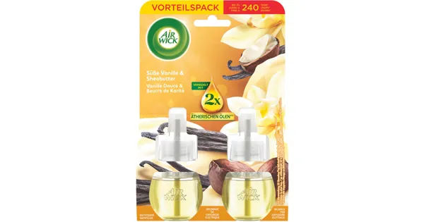 Entdecke den Airwick Nachfüller für Duftstecker in der unwiderstehlichen Duftrichtung Vanille und Shea Butter. Gönn dir eine sinnliche Auszeit und verwandle dein Zuhause in eine Wohlfühloase. Mit zwei Flakons à 19 ml, verfeinert mit ätherischen Ölen, geniesst du bis zu 240 Tage lang einen verführerischen Duft, der deinen Alltag verschönert.