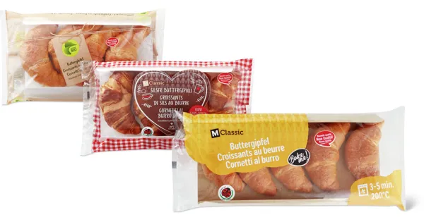 Ab 2 Packungen, z.B. M-Classic Buttergipfel, IP-SUISSE, 5 Stück, 200 g, 2.64 statt 3.30, 100 g = 1.32, Angebot gilt nur vom 16.12. bis 22.12.2025, solange Vorrat.