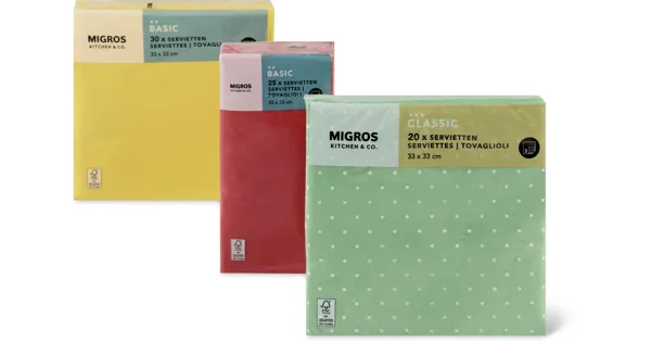 Ab 2 Stück, (ohne Hit-Artikel), z.B. Servietten grün mit Punkten, 33 x 33 cm, 20 Stück, 2.70 statt 4.50, Angebot gilt nur vom 26.3. bis 8.4.2026, solange Vorrat.