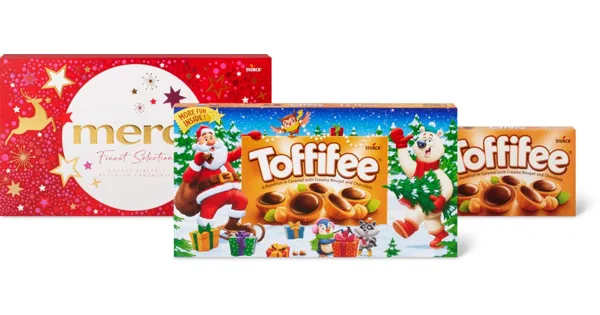 Z.B. Toffifee Adventspackung, 375 g, 5.36 statt 5.95, 100 g = 1.43, Angebot gilt nur vom 18.11. bis 24.11.2025, solange Vorrat.