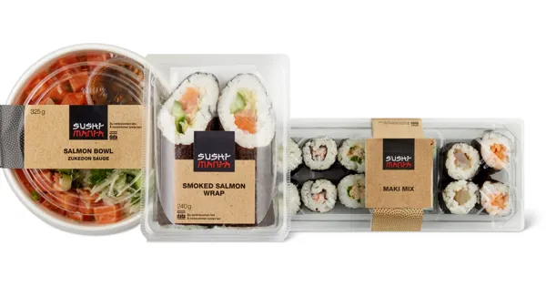 (ohne hausgemachte Artikel), z.B. Smoked Salmon Wrap, 240 g, 6.– statt 7.50, 100 g = 2.50, Angebot gilt nur vom 25.11. bis 1.12.2025, solange Vorrat.