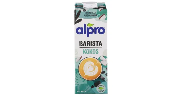 Kokosnussdrink mit Soja, angereichert mit Calcium. Ultrahocherhitzt MIT BARISTAS ENTWICKELT für vielseitige köstliche Kaffeekreationen, ob heiss oder kalt. Ganz LEICHT aufschäumbar und dank GLÄNZENDEM MIKROSCHAUM perfekt für deine LATTE ART. Die leichte Kokosnote gibt deinen Kaffeekreationen ein traumhaftes TROPISCHES FLAIR mit aromatischem Schaum. LECKER & NÜTZLICH Gewusst? Aus den Resten der Kokosnüsse, die wir für unseren leckeren Barista Drink verwenden, können Seile, Netze und Türmatten hergestellt werden. Quelle von Calcium und pflanzlichem Protein.FÜR BARISTASVor Gebrauch kühlen, GUT SCHÜTTELN. Auf MAX. 60°C erhitzen. Nicht mehrmals erhitzen.Aufschäumen bis maximal 60°CFür heisse und kalte Getränke – Zutaten: Wasser, Kokosmilch (5,7%) (Wasser, Kokoscreme (2,6%)), geschälte SOJABOHNEN (2,9%), Zucker, Fruktose, Säureregulatoren (Kaliumphosphate), Calciumcarbonat, Meersalz, Aroma, Stabilisator (Gellan). Zutaten: Wasser, Kokosmilch (5,7%) (Wasser, Kokoscreme (2,6%)), geschälte SOJABOHNEN (2,9%), Zucker, Fruktose, Säureregulatoren (Kaliumphosphate), Calciumcarbonat, Meersalz, Aroma, Stabilisator (Gellan).