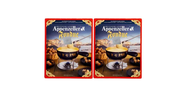 Fertig-Fondue, vollfett Appenzeller Fondue. Fertig-Fondue. Alkoholhaltig. Pasteurisiert. 2 Beutel zu 400 g. 800 g. Appenzeller Fondue - Das würzigste der Schweiz. – Zutaten: Schweizer KÄSE 54%...