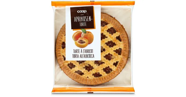 Torte mit 43% Fruchtzubereitung Aprikose – Zutaten: Weissmehl (WEIZEN), Zucker, pflanzliche Öle (Sonnenblumen, Sonnenblumen [ganz gehärtet]), Glucose, Aprikosenmarkkonzentrat 5%, Feuchthaltemittel (E 420), SOJAMEHL, Wasser, EIER*, Glucose-Fructosesirup, Säuerungsmittel (E 330, E 331, E 333), Geliermittel (E 440, E401), VOLLMILCHPULVER, Backtriebmittel (E 503), Emulgatoren (E 471, E 322), Kochsalz jodiert, Aroma, WEIZENGLUTEN, Verdickungsmittel (E 414, E 413). Kann Spuren von BAUMNUSS, DINKEL, GERSTE, HAFER, HASELNUSS, KHORASAN-WEIZEN, MANDELN, ROGGEN, SESAM enthalten. *aus Freilandhaltung. Zutaten: Weissmehl (WEIZEN), Zucker, pflanzliche Öle (Sonnenblumen, Sonnenblumen [ganz gehärtet]), Glucose, Aprikosenmarkkonzentrat 5%, Feuchthaltemittel (E 420), SOJAMEHL, Wasser, EIER*, Glucose-Fructosesirup, Säuerungsmittel (E 330, E 331, E 333), Geliermittel (E 440, E401), VOLLMILCHPULVER, Backtriebmittel (E 503), Emulgatoren (E 471, E 322), Kochsalz jodiert, Aroma, WEIZENGLUTEN, Verdickungsmittel (E 414, E 413). Kann Spuren von BAUMNUSS, DINKEL, GERSTE, HAFER, HASELNUSS, KHORASAN-WEIZEN, MANDELN, ROGGEN, SESAM enthalten. *aus Freilandhaltung.