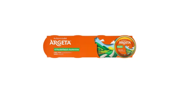 Pouletfleisch-Aufstrich – mit zusätzlichem Milcheiweiss – Zutaten: Trinkwasser, gekochtes Pouletfleisch 29%, Sonnenblumenöl, MILCHEIWEISS 3%, Pouletfett, Kartoffelstärke, konzentrierte Brühe...