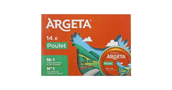 Pouletfleisch-Aufstrich – mit zusätzlichem Milcheiweiss Der Argeta Hühnerfleisch Aufstrich überzeugt durch seinen feinen Geschmack und die praktische Anwendung. Hergestellt aus hochwertigem...