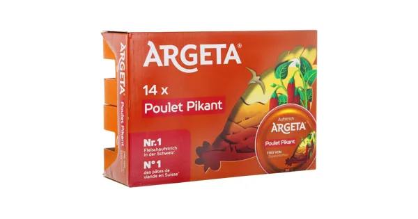 Pikanter Pouletfleisch-Aufstrich – mit zusätzlichem Milcheiweiss – Zutaten: Trinkwasser, gekochtes Pouletfleisch 29%, Sonnenblumenöl, süsse Paprika, MILCHEIWEISS 3%, Pouletfett, Kartoffelstärke,...