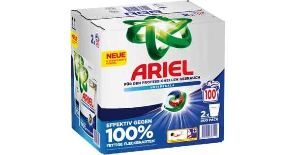 Entdecke die Kraft der Ariel Professionals Wäschepods Universal, die deine Wäsche auf ein neues Sauberkeitslevel heben. Mit unserer verbesserten Formel bekämpfst du effektiv 100% fettige Fleckenarten und verleihst deiner Kleidung einen frischen Glanz. Jeder Pod ist perfekt vorportioniert, sodass du dir keine Sorgen mehr um die richtige Menge Waschmittel machen musst. Ideal für den professionellen Gebrauch oder zu Hause.