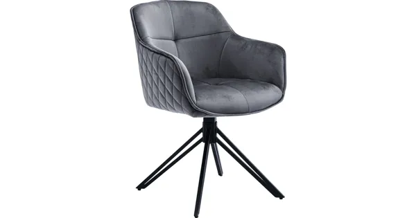 Erlebe ein neues Level von Komfort und Stil mit dem Armlehnstuhl Emma aus Velours in elegantem Grau. Mit seiner modernen Silhouette, den Retro-Anklängen und dem luxuriösen Stoff bringt dieser Stuhl sofort eine besondere Atmosphäre in dein Zuhause. Der graue Stoffbezug verleiht deinem Wohnraum eine zeitlose Eleganz, während das matt schwarze Metallgestell für Stabilität und einen modernen Touch sorgt. Dank der 180 °-Drehfunktion mit Auto-Return kannst du dich leicht bewegen, ohne auf Komfort verzichten zu müssen. Mit einer Sitzhöhe von 50 cm und einer Belastbarkeit bis zu 120 kg ist der Stuhl nicht nur stilvoll, sondern auch praktisch.