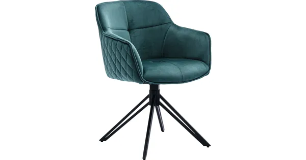 Mach es dir bequem mit dem eleganten Armlehnstuhl Emma aus luxuriösem Velours in edlem Grün. Perfekt für dein Zuhause, vereint er Stil mit Komfort und ist ein echter Blickfang in jedem Raum. Der Stuhl bietet eine Sitzhöhe von 50 cm und ist bis 120 kg belastbar. Einfach ideal für gemütliche Abende oder produktive Stunden am Schreibtisch. Mit seinem 180° drehbaren Auto-Return-Mechanismus passt er sich deinen Bewegungen an und sorgt für maximale Flexibilität. Das stabile Gestell aus mattschwarzem Metall verleiht dem Stuhl nicht nur eine erstklassige Optik, sondern auch die nötige Stabilität.