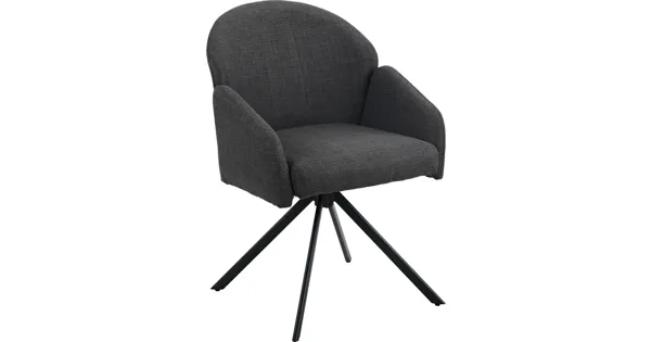 Entdecke den stilvollen Armlehnstuhl Holly in elegantem Anthrazit! Dank seines komfortablen Stoffbezugs und seines robusten, pulverbeschichteten Metallgestells fügt er sich nahtlos in jedes moderne Ambiente ein. Dank der 360°-Drehfunktion kannst du dich uneingeschränkt bewegen. Nutze den Komfort des Swing-Back-Mechanismus, der deinem Rücken sanfte Unterstützung bietet. Dieser Stuhl ist die perfekte Ergänzung für dein Zuhause.