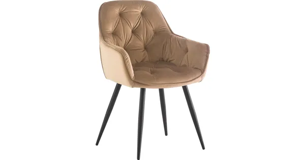 Der Armlehnstuhl Romana setzt ein dekoratives Highlight im Esszimmer. Die schwarzen, pulverbeschichteten Metallbeine geben dem Stuhl Stabilität und einen modernen Stil. Die fest gepolsterte...