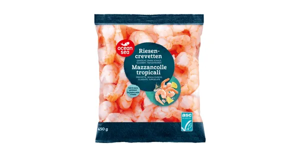 Diese Aktion ist nur in der Westschweiz gültig. , Gekocht & tail-on , Herkunft: Venezuela, Ecuador , Pro 450 g (Abtropfgewicht) , 100 g = 2.11