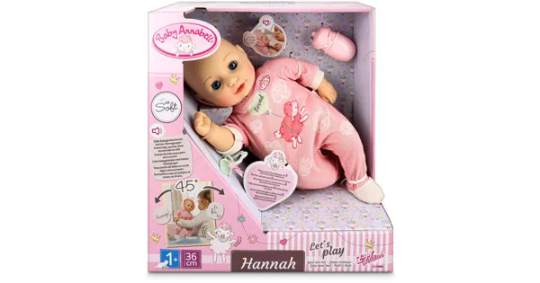 Hannah ist mit ihren 5 Funktionen und der kleinen Grösse die perfekte erste elektronische Funktionspuppe. Jede Interaktion kommentiert sie mit niedlichen Babygeräuschen, wie lachen, Schluckauf oder erstem Babygebrabble. Benötigt 3 AAA Batterien.