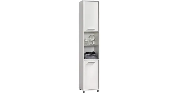 Unser Badhochschrank Betty ist ein zeitloses und praktisches Möbelstück. Der Hochschrank beansprucht nur wenig Platz und bietet in blickdichten und offenen Fächern reichlich Stauraum für alle wichtigen Badutensilien. In sechs Fächern finden Pflegeprodukte, Stylingtools und Handtücher ein ordentliches Plätzchen.