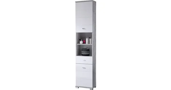 Eine riesige Menge Stauraum bietet unser Badhochschrank Loop. Hinter den beiden Türen ist jeweils ein Ablagefach, auf denen sich Handtücher, Pflegeprodukte, Haartrockner, etc. unsichtbar verstauen lassen. Das sichtbare offene Fach ist ebenfalls mit einem Ablagefach ausgestattet. Hier kannst du die Produkte, die täglich genutzt werden, sichtbar und griffbereit abstellen oder einfach schön dekorieren. Der Badhochschrank Loop in Beton-Optik ist das passende Ergänzungsstück zum Lavaboy Loop. Unsere Badserie Loop ist insgesamt in vier verschiedenen Ausführungen erhältlich.