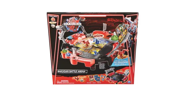 In der individuell zusammenstellbaren Bakugan Battle Arena kannst du kämpfen wie nie zuvor, hier ist DER ultimative Ort für epische Schlachten! Ein besonderes Spielerlebnis bieten aussergewöhnliche Hindernisse wie Clan-Flaggen und Sparring Totems, Drehscheiben und Paddelräder. Hier können die Bakugan rollen, kreiseln und gewinnen. Sie können aber auch gut aufbewahrt und präsentiert werden. Dank integrierter Handyhalterung werden die Battles im besten Blickwinkel gefilmt. Der enthaltene Special Attack Bakugan und die Sammelkarten erleichtern den Einstieg in die Bakugan-Welt. Mithilfe der XL-Ripcord (Reissleine) rollen die Bakugan über die Portalkarten und es kommt zur legendären Verwandlung. Mit einem Code für die Online-Gamingplattform Roblox stehen weitere Spiel- und Interaktionsmöglichkeiten bereit. Durch den Austausch der Wandelemente mit Training Sets (separat erhältlich) entstehen individuelle Kombinationen, die rivalisierende Clan-Kämpfe im eigenen Zuhause ermöglichen. Die fantastischen neuen Bakugan, Special Attack Bakugan und Starter Packs (jeweils separat erhältlich) sind perfekt, um ein Elite-Team zusammenzustellen. So steht dem nächsten Bakugan Battle nichts mehr entgegen.