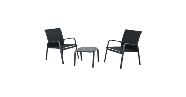 Mit dem Balkonset Eva kannst du deinen Aussenbereich stilvoll gestalten, sei es deinen Balkon, deine Terrasse oder deinen Garten. Drinks und Snacks können auf dem Beistelltisch abgestellt werden. Die Sessel sind mit angenehmen Sitz- und Rückenkissen aus 3D-Textile Polyester. Mach es dir bequem und lass deine Seele baumeln.