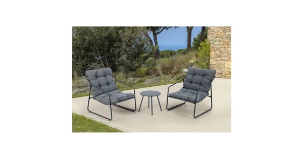 Stell dir vor, du geniesst einen lauen Sommerabend auf deinem Balkon, umgeben vom stilvollen Balkonset Genua in elegantem Anthrazit. Es verbindet komfortables Design mit langlebiger Qualität. Die robusten Metallrahmen garantieren Stabilität, während die widerstandsfähigen Olefin-Kissen maximalen Komfort bieten. Die Polster sind UV-beständig, atmungsaktiv und schnell trocknend, also ideal für den Einsatz im Freien. Ein Set, das sich deinem Lebensstil anpasst und dir die nötige Entspannung bietet.