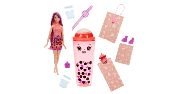 Die Puppen aus der Barbie Pop Reveal Bubble Tea Serie bieten beim Auspacken ein Erlebnis für die Sinne mit acht Überraschungen! Der Deckel mit dem Schleim kann abgenommen und die Folie für Squishy-Spass mit dem Trinkhalm durchstochen werden. Wird die Folie vom Becher abgezogen, kommen eine nach Bubble Tea duftende Barbie-Puppe und acht weitere Überraschungen zum Vorschein! Welche Puppe kommt zum Vorschein? Zur Auswahl stehen Taro Milk, Berry Bliss, Green Tea und Mango Mochi. Beim weiteren Auspacken lassen sich zwei wiederverwendbare Eiswürfel entdecken, die einen Rock und ein Paar Schuhe enthalten. In den Überraschungstüten stecken ein Trinkhalm, eine Tasche und ein passendes, duftendes Squishy-Tier! Für noch mehr Wow-Momente sorgen die Farbwechsel im Gesicht der Barbie-Puppe. Für wunderbaren Sammelspass! Alle Puppen separat erhältlich. Die Puppen können nicht von allein stehen. Abweichungen in Farbe und Gestaltung vorbehalten.