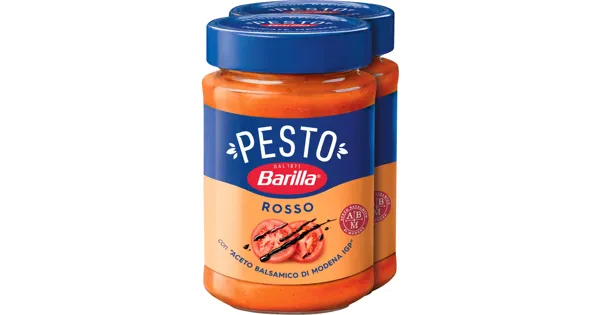Eine einfache und leckere Kombination: Barilla Pesto rosso mit Tomaten, Aceto Balsamico di Modena und Grana Padano. Passt hervorragend zu Farfalle. Barilla Pesto Rosso ist glutenfrei und wird ohne...