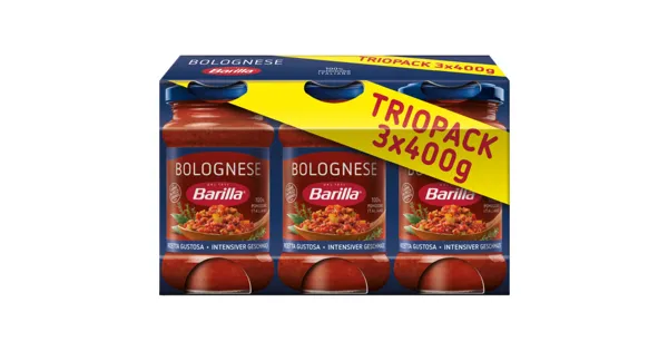 TOMATENSAUCE MIT RIND- UND SCHWEINEFLEISCH Die Barilla Sugo Bolognese überzeugt mit einer authentischen Rezeptur aus sonnengereiften Tomaten und sorgfältig ausgewähltem Rindfleisch. Diese...