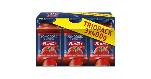 TOMATENSAUCE MIT TOMATEN UND DATTELTOMATEN Der Barilla Sugo Pomodoro begeistert mit intensivem Tomatengeschmack und sorgt für authentische italienische Momente in deiner Küche. Hergestellt aus sonnengereiften Tomaten, passt diese Sauce ideal zu allen Pasta-Gerichten. Ein hochwertiges Produkt für unkomplizierten Genuss. – Zutaten: Tomatenfruchtfleisch 74%, Tomatenmarkkonzentrat 12%, passierte Datteltomaten 4%, pflanzliche Öle (Olive, Sonnenblume), Zwiebeln 2,8%, Zucker, Salz, natürliche Aromen, Knoblauch, schwarzer Pfeffer. Zutaten: Tomatenfruchtfleisch 74%, Tomatenmarkkonzentrat 12%, passierte Datteltomaten 4%, pflanzliche Öle (Olive, Sonnenblume), Zwiebeln 2,8%, Zucker, Salz, natürliche Aromen, Knoblauch, schwarzer Pfeffer.