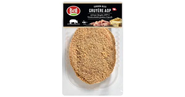 Schweinefleischzubereitung aufgetaut, mit Käse und Schweinefleischerzeugnis, paniert Rassiges Cordon bleu aus bestem Schweinefleisch. Gefüllt mit würzigem Gruyère-Käse und saftigem Vorderschinken. Unwiderstehlichknusprig und saftig. – Zutaten: Schweinefleisch 55% (CH), Paniermehl 15% (WEIZENMEHL, Kochsalz, Hefe, Paprika), Nasspanade 13% (VOLLEI [aus Freilandhaltung], Reisstärke, Kochsalz jodiert, Gewürze, Reismehl), KÄSE 9%, Vorderschinken 8% (Schweinefleisch [CH], Nitritpökelsalz [Kochsalz, Konservierungsstoff {E 250}], Maltodextrin, Stabilisatoren [E 450, E 451], Antioxidationsmittel [E 301], Hefeextrakt, Gewürzextrakte). Zutaten: Schweinefleisch 55% (CH), Paniermehl 15% (WEIZENMEHL, Kochsalz, Hefe, Paprika), Nasspanade 13% (VOLLEI [aus Freilandhaltung], Reisstärke, Kochsalz jodiert, Gewürze, Reismehl), KÄSE 9%, Vorderschinken 8% (Schweinefleisch [CH], Nitritpökelsalz [Kochsalz, Konservierungsstoff {E 250}], Maltodextrin, Stabilisatoren [E 450, E 451], Antioxidationsmittel [E 301], Hefeextrakt, Gewürzextrakte).