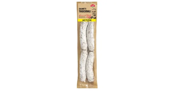 Schweinefleischerzeugnis – Zutaten: pro 100 g: Schweinefleisch 109 g (Schweiz), Speck (Schweiz), Nitritpökelsalz (Kochsalz, Konservierungsstoff [E 250]), Glucose, Antioxidationsmittel (E 301), Gewürze. Hülle nicht zum Verzehr geeignet. Zutaten: pro 100 g: Schweinefleisch 109 g (Schweiz), Speck (Schweiz), Nitritpökelsalz (Kochsalz, Konservierungsstoff [E 250]), Glucose, Antioxidationsmittel (E 301), Gewürze. Hülle nicht zum Verzehr geeignet.