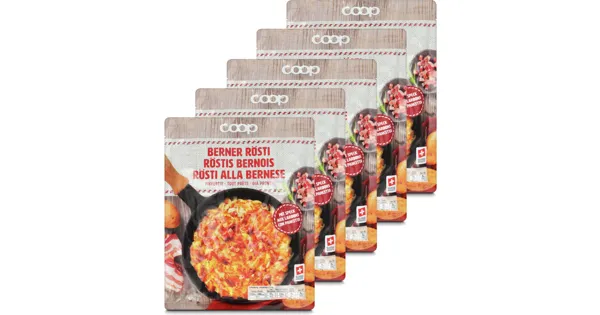 Rösti mit Schweinefleischerzeugnis geräuchert und Käse Die Berner Rösti mit Speck bietet ein hervorragendes Preis-Leistungsverhältnis und ist eine ideale Beilage für viele Gerichte. Hergestellt aus hochwertigen Kartoffeln und verfeinert mit Speck, überzeugt dieses Produkt durch seinen authentischen Geschmack. Geniessen Sie eine traditionelle Schweizer Spezialität, die sich schnell und einfach zubereiten lässt. – Zutaten: Kartoffeln 84%, Schweinefleischerzeugnis, geräuchert Brustspeck" 7% (Schweinefleisch, Nitritpökelsalz [Kochsalz, Konservierungsstoff [E 250]), Traubenzucker, Stabilisatoren [E 450, E 451], Zucker, Antioxidationsmittel [E 301], Gewürzextrakte), Schweinefleischerzeugnis "Speck" 3% (Schweinefleisch, Nitritpökelsalz [Kochsalz, Konservierungsstoff [E 250]], Gewürze, Traubenzucker, Maltodextrin, Antioxidationsmittel [E 301], Konservierungsstoff [E 252]), Zwiebeln, Rapsöl, KÄSE 1,5%, Kochsalz, Stärke, Reismehl, Gewürze, Antioxidationsmittel (E 300, E 224SULFIT,330), Zucker, Gewürzextrakte, Zitronensaftkonzentrat.". Zutaten: Kartoffeln 84%, Schweinefleischerzeugnis, geräuchert Brustspeck" 7% (Schweinefleisch, Nitritpökelsalz [Kochsalz, Konservierungsstoff [E 250]), Traubenzucker, Stabilisatoren [E 450, E 451], Zucker, Antioxidationsmittel [E 301], Gewürzextrakte), Schweinefleischerzeugnis "Speck" 3% (Schweinefleisch, Nitritpökelsalz [Kochsalz, Konservierungsstoff [E 250]], Gewürze, Traubenzucker, Maltodextrin, Antioxidationsmittel [E 301], Konservierungsstoff [E 252]), Zwiebeln, Rapsöl, KÄSE 1,5%, Kochsalz, Stärke, Reismehl, Gewürze, Antioxidationsmittel (E 300, E 224SULFIT,330), Zucker, Gewürzextrakte, Zitronensaftkonzentrat.".