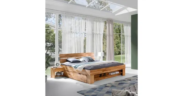 Unser Bett Sarah ist perfekt für Liebhaber rustikaler Holzmöbel. Das charakterstarke Bett ist aus massivem Buchenholz gefertigt, welches dem Design eine natürliche Struktur verleiht. Ein Kopfteil, vier Schubladen und ein Regal im Fussteil runden die Gesamtoptik ab. Entdecke passend dazu unsere grosse Auswahl an bequemen Matratzen und Lattenroste für traumhafte Nächte in deinem neuen Bett.
