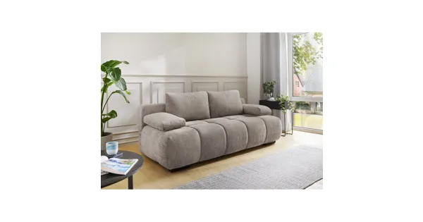 Das Schlafsofa Ronja mit den auffallend tiefen Einzügen ist ein echter Hingucker im Wohnbereich. Zwei grosse Rückenkissen und zwei formschöne Armlehnen unterstreichen nicht nur das elegante Design, sondern sorgen auch für einen hohen Sitzkomfort. Die hochwertige Schaumpolsterung lädt zum Entspannen ein, egal, ob man sitzt oder liegt. Mit einer Liegefläche von 148 x 200 cm bietet das Sofa ausreichend Platz für erholsame Nächte. Der integrierte Bettkasten mit einem Innenmass von ca. 157 x 59 x 25 cm bietet praktischen Stauraum für Decken, Kissen oder Bettwäsche. Besonders praktisch ist, dass der Rücken des Sofas vollständig mit Stoff bezogen ist. So kann es frei im Raum platziert werden und macht von allen Seiten eine gute Figur. Dieses Schlafsofa vereint durchdachte Funktionalität mit stilvollem Design und ist somit ideal für moderne Wohnräume, in denen Komfort und Flexibilität gefragt sind.