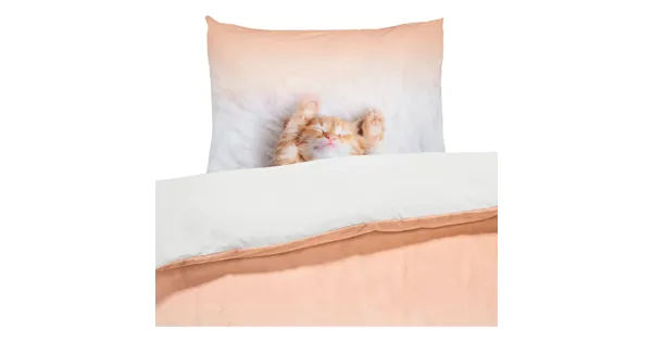 Die süsse Satin-Bettwäsche mit dem niedlichen Kätzchen-Aufdruck verzaubert sowohl kleine als auch grosse Katzenliebhaber! Eine tolle Bettwäsche fürs Kinder- oder Gästezimmer. Einfach einkuscheln und ganz leise sein, sonst wacht das Kätzchen beinahe noch auf.
