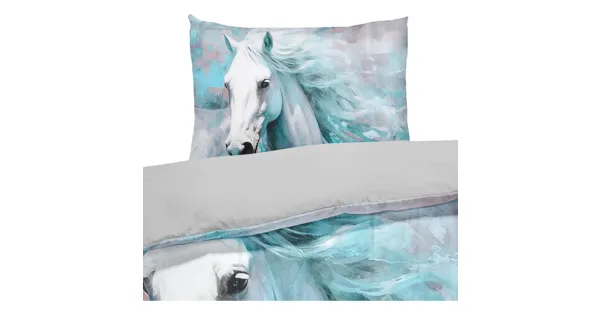 Die Bettwäsche besteht aus 100% Baumwolle und besticht durch ihr bezauberndes Pferdemotiv. Sie verleiht deinem Schlafzimmer einen frischen und modernen Look. Zudem fühlt sich die Satin-Bettwäsche nicht nur herrlich weich auf der Haut an, sondern beugt durch ihre glatte Oberfläche auch Haarschäden vor. Ein rundum gelungener Bettanzug!