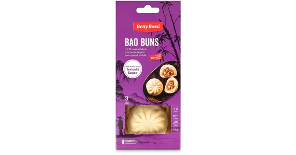Teigtaschen gefüllt mit Schweinshackfleisch, mit Teriyaki-Sauce, aufgetaut – Zutaten: WEIZENMEHL, Wasser, Schweinshackfleisch 16% (Schweiz), Teriyaki-Sauce 9% (Sojasauce [Wasser, SOJABOHNEN, WEIZEN, Kochsalz, Speiseessig, Zucker], Reiswein "Choya Sake" [Reis, Koji, Wasser], Reiswein [Wasser, Reis, WEIZEN, Kochsalz, Farbstoff [E 150c]], Zucker, Ingwer, Cayennepfeffer]), Edamame (SOJABOHNEN), Hefe, Zwiebeln, Zucker, Kochsalz jodiert, BUTTER, Knoblauch, SESAMÖL. Zutaten: WEIZENMEHL, Wasser, Schweinshackfleisch 16% (Schweiz), Teriyaki-Sauce 9% (Sojasauce [Wasser, SOJABOHNEN, WEIZEN, Kochsalz, Speiseessig, Zucker], Reiswein "Choya Sake" [Reis, Koji, Wasser], Reiswein [Wasser, Reis, WEIZEN, Kochsalz, Farbstoff [E 150c]], Zucker, Ingwer, Cayennepfeffer]), Edamame (SOJABOHNEN), Hefe, Zwiebeln, Zucker, Kochsalz jodiert, BUTTER, Knoblauch, SESAMÖL.