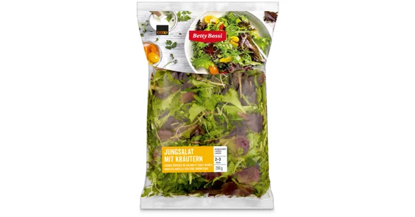 Mischsalat mit Kräutern Betty Bossi Jungsalat mit Kräutern bietet eine zarte Mischung aus frischem Salat und einer feinen Auswahl an aromatischen Kräutern. Die ideale Grundlage für knackige Salate...
