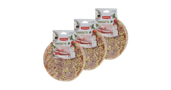 Pizza belegt mit Schinken Die Betty Bossi Pizza Prosciutto überzeugt mit ihrer köstlichen Kombination aus zartem Schinken und frischem Käse. Ideal für eine schnelle Mahlzeit, bietet sie ein...