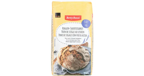 Backmischung für Sauerteigbrot Das Betty Bossi Roggen Sauerteigbrot besticht durch seinen herzhaften Geschmack und die traditionelle Zubereitung mit Roggenmehl. Ideal für ein nahrhaftes Frühstück...