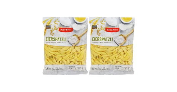 Eierspätzli Die Betty Bossi Spätzli bieten frische Genussmomente aus der Schweiz. Diese gekühlten Spätzli sind ideal für eine schnelle und einfache Zubereitung. Hergestellt aus hochwertigen...