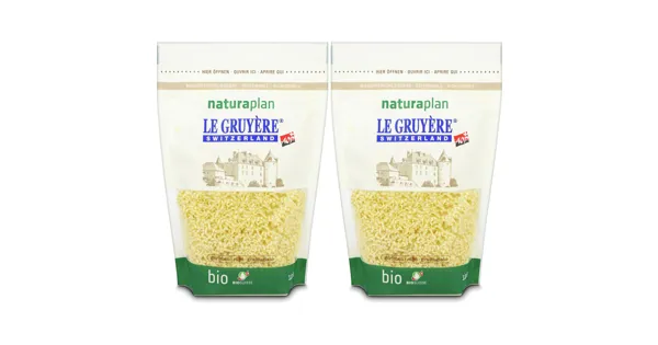 Vollfett-Hartkäse mit Rohmilch hergestellt Der Bio Gruyère AOP gerieben überzeugt mit seinem authentischen Charakter und eignet sich ideal zum Verfeinern von Gratins, Pastagerichten oder Fondue....