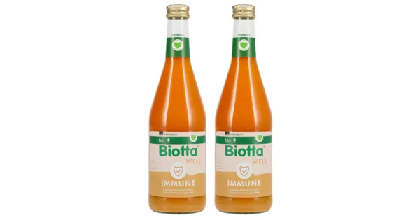 Bio Frucht- und Gemüsesaftmischung mit Bananenpüree, Sanddornsaft und Ingwersaft Biotta Well Immune kombiniert gekonnt hochwertige Frucht- und Gemüsesäfte zu einem harmonischen Geschmackserlebnis....