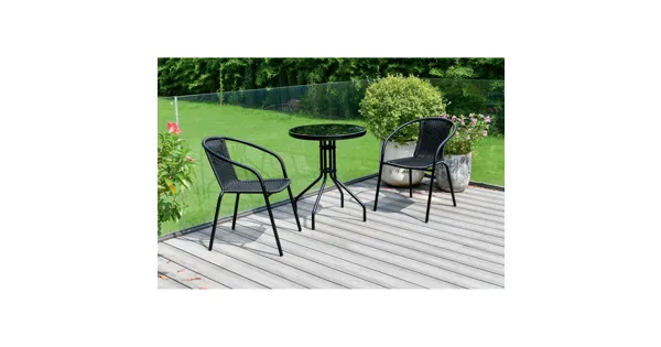 Das schwarze Bistroset Lumina verwandelt deinen Aussenbereich in ein stilvolles Café. Stell dir vor, wie du mit einem guten Buch und einer Tasse Kaffee den Tag auf diesem eleganten Set beginnst. Die pulverbeschichteten Metallstühle bieten nicht nur Stabilität, sondern lassen sich auch leicht stapeln, um Platz zu sparen. Der Tisch mit robustem Glas erstrahlt in einem minimalistischen Design, das perfekt in jeden modernen Garten oder auf jeden Balkon passt.