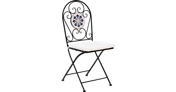 Ein unwiderstehlicher Akzent für deinen Garten oder Balkon wartet darauf, entdeckt zu werden. Der Bistrostuhl Maroko vereint klassisches Design mit modernen Elementen. Warum nicht auf deinem Balkon in einem Hauch von Marokko schwelgen? Das filigran gearbeitete Metallgestell in elegantem Schwarz harmoniert perfekt mit den grauen Keramikmosaikplatten und verleiht jedem Aussenbereich einen Hauch von Exotik. Kompakt und klappbar, passt dieser Stuhl in die kleinsten Ecken und bietet dennoch bequemen Sitzkomfort dank des mitgelieferten Polyesterkissens.