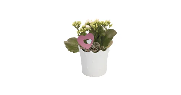 Ø-Gefäss: 9 - 15 cm (je nach Modell), Rose oder Kalandiva in dekorativen Keramik-, Metall- oder Zinkgefässen passend zum Valentinstag