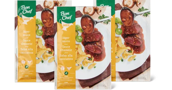 3er-Pack, Jäger, Curry, Rahm oder Champignons, z.B. Jägersauce, 3 x 32 g, 3.30 statt 4.95, 100 g = 3.44, Angebot gilt nur vom 7.10. bis 13.10.2025, solange Vorrat.