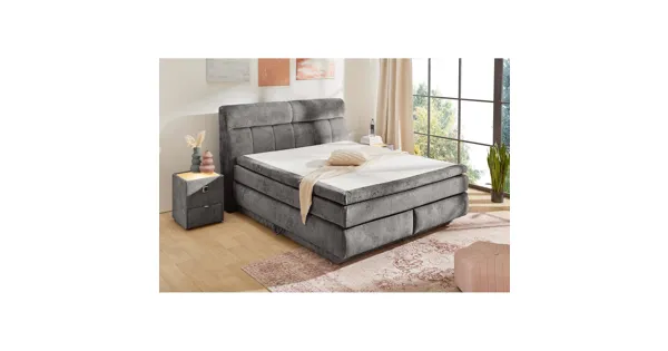 Erlebe erholsame Nächte im Boxspringbett Queen! Der edle Chenille-Stoff verleiht deinem Schlafzimmer eine luxuriöse Note, während die bequemen 7-Zonen-Tonnentaschenfederkern-Matratzen H3 für optimalen Schlafkomfort sorgen. Geniesse die grosszügige Liegefläche von 180 x 200 cm und eine bequeme Sitzhöhe von 67 cm, die den Einstieg ins Bett erleichtert. Für zusätzlichen Komfort sorgt der integrierte Topper, der ca. 9 cm hoch ist. Ausserdem verfügt das Boxspringbett Queen über zwei praktische Bettkästen, die sich dank Gasdruckfedern leicht öffnen lassen und dir wertvollen Stauraum schenken.