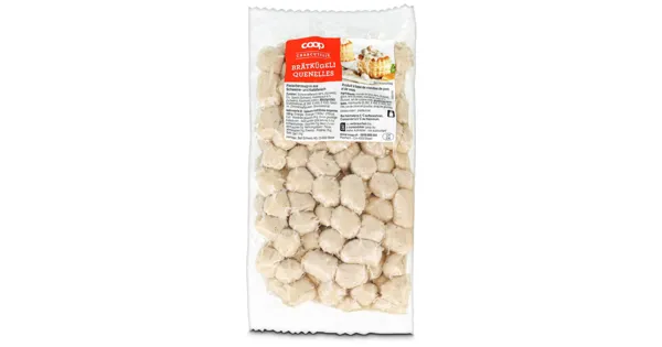 Fleischerzeugnis aus Schweine- und Kalbfleisch – Zutaten: Schweinefleisch 48% (Schweiz), Eis, Speck (Schweiz), Kalbfleisch 6% (Schweiz), Kochsalz jodiert, MILCHPROTEIN, Stabilisatoren (E 262, E 450, E 452), Gewürze, Zitronensaftpulver, Glucosesirup. Zutaten: Schweinefleisch 48% (Schweiz), Eis, Speck (Schweiz), Kalbfleisch 6% (Schweiz), Kochsalz jodiert, MILCHPROTEIN, Stabilisatoren (E 262, E 450, E 452), Gewürze, Zitronensaftpulver, Glucosesirup.
