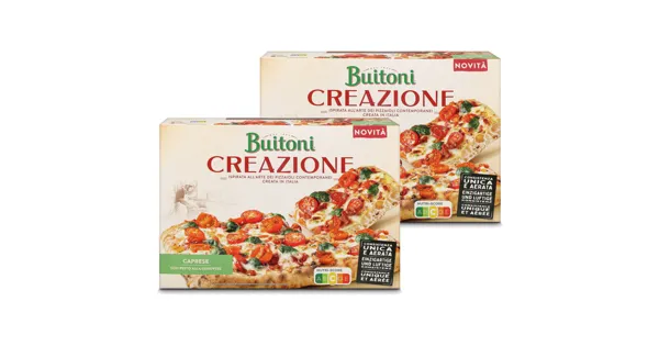 Pizza belegt mit Kirschtomaten, halbgetrockneten Tomaten, Pesto-Sauce und Käse, tiefgefroren Die Buitoni Creazione Caprese bietet ein ausgezeichnetes Preis-Leistungsverhältnis und ist ideal für eine schnelle und schmackhafte Mahlzeit. Mit frischen Tomaten und Mozzarella belegt, bringt sie den authentischen Geschmack Italiens direkt in Ihre Küche. Als Tiefkühlprodukt ist sie stets griffbereit und einfach zuzubereiten. – Zutaten: WEIZENMEHL, Wasser, zerkleinerte Schältomaten (11,7 %), Kirschtomaten (10,3 %), MOZZARELLA (10,1 %) (MILCH, Speisesalz, Lab, Milchsäurekulturen), MOZZARELLA Fior di latte (5,1 %) (MILCH, Speisesalz, Lab, Milchsäurekulturen), marinierte, halbtrocknete Tomaten (4,6 %) (Tomaten, Speisesalz, Sonnenblumenöl, Gewürze), Pesto-Sauce mit Basilikum (3,4 %) (Wasser, Basilikum [1 %], Rapsöl, PECORINO KÄSE [SCHAFSMILCH], Pinienkerne, Speisesalz, Stärke, weisser Balsamico Essig [Weissweinessig, Traubenmostkonzentrat], Zucker, Kräuter undGewürze, Knoblauch, Säuerungsmittel: Citronensäure, Tomatenpulver), Rapsöl, Speisesalz, Hefe, Kräuter und Gewürze, Knoblauch, GERSTENMALZEXTRAKT, Maisgriess. Kann enthalten: EI, FISCH, LUPINE, SELLERIE, SENF, SESAM und SOJA. Zutaten: WEIZENMEHL, Wasser, zerkleinerte Schältomaten (11,7 %), Kirschtomaten (10,3 %), MOZZARELLA (10,1 %) (MILCH, Speisesalz, Lab, Milchsäurekulturen), MOZZARELLA Fior di latte (5,1 %) (MILCH, Speisesalz, Lab, Milchsäurekulturen), marinierte, halbtrocknete Tomaten (4,6 %) (Tomaten, Speisesalz, Sonnenblumenöl, Gewürze), Pesto-Sauce mit Basilikum (3,4 %) (Wasser, Basilikum [1 %], Rapsöl, PECORINO KÄSE [SCHAFSMILCH], Pinienkerne, Speisesalz, Stärke, weisser Balsamico Essig [Weissweinessig, Traubenmostkonzentrat], Zucker, Kräuter undGewürze, Knoblauch, Säuerungsmittel: Citronensäure, Tomatenpulver), Rapsöl, Speisesalz, Hefe, Kräuter und Gewürze, Knoblauch, GERSTENMALZEXTRAKT, Maisgriess. Kann enthalten: EI, FISCH, LUPINE, SELLERIE, SENF, SESAM und SOJA.